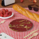 Eleganter moderner Stil aus Gold und rotem Marmor Pappteller