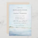 Ein Küstenthema, das alles in einer Hochzeitseinladung präsentiert, mit einer bemalten Aquarelllandschaft eines wilden Strandes und des Ozeans entlang der Küste. Elegant, schlicht und modern, ist es eine schöne Wahl für eine Hochzeit in Urlaubsort im Sommer. Dies alles in einem Hochzeitsvortrag Einladung kann vollständig personalisiert werden mit allen Informationen über die Hochzeit, auf der Rückseite der Karte.