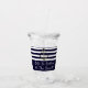 Das Leben ist besser am Strand! Eine klassische Tasse, um Ihren nächsten Strandurlaub zu erleben. Das Design umfasst blaue und weiße Segelstreifen und einen kleinen Anker.