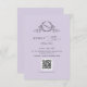 Eleganter QR-Code und eine UAWG-Online-Hochzeitszimmerkarte, mit einem exquisiten handgezeichnet Monogramm, das die Initialen des Ehepaares zeigt und einem schönen Design mit modernen handschriftlichen Kalligrafiedetails. Attraktive Lavendel lila Hintergrundfarbe. Teil unserer Kollektion "Lavender Watercolor Botanical Monogram Wedding" mit einer Vielzahl von Koordinierungsprodukten.