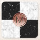 Eleganter monogramm Rose Gold Schwarz-weißer Marmo Rechteckiger Pappuntersetzer