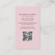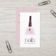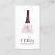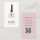 Elegante, minimale Blush Nail Techniker Visitenkarte. Das Design ist mit einer nagelpolierten Flasche in trendigem Rosa, einem Typografie-Skript ''Nails'' und Ihrem Namen auf der Vorderseite ausgestattet. Personalisieren Sie weiter mit Ihren Kontaktdaten und qr-Code auf der Rückseite.