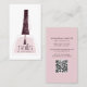 Elegante, minimale Blush Nail Techniker Visitenkarte. Das Design ist mit einer nagelpolierten Flasche in trendigem Rosa, einem Typografie-Skript ''Nails'' und Ihrem Namen auf der Vorderseite ausgestattet. Personalisieren Sie weiter mit Ihren Kontaktdaten und qr-Code auf der Rückseite.