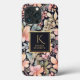 Erhöhen Sie den Stil Ihres Telefons mit unserem eleganten Black Pink Floral Watercolor Monogram Name Phone Case. Dieses exquisite Design präsentiert zarte Wildblumen, Beeren und Farne in sanften Pastelltönen in Beige, Pfirsichrosa, Rot und aquamarinem Grün auf dunkelschwarzem Hintergrund. Es ist das perfekte Accessoire für das anspruchsvolle und stilvolle Individuum in Ihrem Leben.