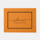 Elegant willkommen Doormat mit einem schwarzen Skript auf einem orangen Hintergrund. Personalisieren Sie Ihre Daten mit Ihrem Familiennamen oder Text.