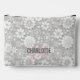 Elegantes weißes Blumenmuster Monogramm Name Accessory Pouch.