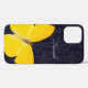 Gelber Schmetterling auf einem schwarzen Damast Muster Hintergrund iPhone Gehäuse. Personalisieren Sie dieses elegante iPhone Gehäuse mit Ihrem Namen.