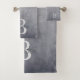 Modernes abstraktes rustikales Badetuch-Set. Elegante graue, weiße Farben. Künstlerisches Design. Modernes, schlichtes und elegantes Badaccessoire. Sie können dieses Design für sich selbst oder für einen geliebten Menschen personalisieren, indem Sie Ihren Namen ändern.  Eine Textvorlage wird zur Personalisierung mit Ihrem Monogramm oder Text hinzugefügt. Sie können auch die Probe Monogramm löschen, wenn Sie die Handtücher ohne Text bestellen möchten.