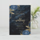Eleganter Navy Blue Gold Floral QR Code Hochzeit Einladung