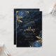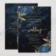 Diese elegante Hochzeitseinladung mit blauen Blumenbouquets Set mit vergoldeten Imitaten Folie in zwei Ecken, auf einem Hintergrund von marineblauen Aquarellbilder. Der anpassbare Text kombiniert goldfarbene Serif-, Kursivschrift- und Handschriftzeichen-Schriftart. Die Rückseite bietet Platz für Hochzeitsdetails, zusammen mit einem QR-Code können Gäste scannen, um Ihre Website und UAWG zu besuchen, was die Kosten für den Druck und Versand separater RSVP-Karten rette.