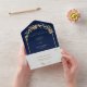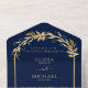 Eleganter Navy Blue Golden Foliage Wedding Arch All In One Einladung