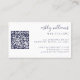 Die "Elegan Navy Blue Monogram Floral Wappen QR Code Business Card" ist ein Meisterwerk für anspruchsvolle Profis, die ihren raffinierten Stil und ihre Liebe zum Detail zum Ausdruck bringen wollen. Diese Visitenkarte strahlt mit ihrem anmutigen, blumengeschmückten Wappen und dem prominent zentrierten Monogramm ein ausgeklügeltes Ambiente aus. Das ganze Set steht in einem ruhigen pastellblauen Hintergrund, der ein Gefühl von polierter Professionalität vermittelt. Jede Karte ist ein taktiler Genuss mit einer Textur, die das sensorische Erlebnis insgesamt noch verstärkt. Die Vorderseite weist Ihren personalisierten Namen und Ihre Monogramm auf, was einen sofortigen visuellen Effekt erzeugt. Die Rückseite innoviert mit der Einführung eines QR-Codes, der moderne Technologie nahtlos mit traditioneller Eleganz verbindet. Diese Funktion ermöglicht den sofortigen Zugriff auf Ihre digitalen Kontakte, einschließlich E-Mail- und Social-Media-Profile, sowie wichtige Kontaktdaten wie Ihre Telefonnummer und Adresse, die alle in einem klaren, zugänglichen Format angezeigt werden. Diese Visitenkarte eignet sich ideal für Fotografen, Künstler und andere Kreative. Sie ist eine harmonische Mischung aus klassischem Reiz und zeitgenössischer Eleganz und ist somit ein zentrales Element Ihrer beruflichen Identität. Bitte kontaktieren Sie den Designer für ergänzende Markenmaterialien. Copyright Anastasia Surridge, alle Rechte vorbehalten.