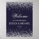 Eleganter Navy Blue Sparkling Silver Glitzer Hochz Poster