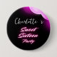 Eleganter Neon Pink Black Retro Sweet 16. Geburtst Button