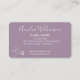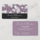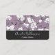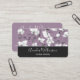 Diese trendigen, modernen, schwarz-weißen Visitenkarten mit Blumenmuster zeichnen sich durch ein wunderschönes Orchideenmuster auf einem lila Hintergrund aus. Einfach anpassbar, indem Sie Ihren Namen (in einem modernen kalligraphischen weißen Schriftart) und Beruf (alle Kappen weißen Schriftart) auf der dunkelgrauen Band im unteren Teil hinzufügen. Die Rückseite der Karte ist lila und personalisierbar mit allen Kontaktinformationen in weißer Schrift (Adresse, Telefonnummer, Website, E-Mail-Adresse).