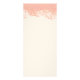 Menükarte. Eleganter Pfirsichblumenwirl. Matching Produkte verfügbar - ⭐ Dieses Produkt ist zu 100% benutzerdefinierbar. Grafik und / oder Text kann hinzugefügt, gelöscht, verschoben, verändert, verändert werden, rotiert, etc... 99% meiner Designs in meinem Geschäft sind in Schichten gemacht. Damit können Sie die Größe und den Text der Grafik und des Textes so anpassen, dass sie perfekt zu jedem Produkt passen. ⭐ (Bitte vergewissern Sie sich vor der Bestellung, dass Sie Grafiken oder Text verändern, ändern, hinzufügen, löschen oder verschieben) Sie können auch "TRANSFER DESIGN" auf anderen Zazzle-Produkten und passen das Design an die meisten Zazzle-Objekte an. (Schaltfläche ist rechts unten) Einige Textgrafiken sind zum Ausfüllen der Box(n) bereit, oder Sie können auf den "CUSTOMIZE"-Button klicken, um einen der Schriftart oder Grafiken hinzuzufügen, zu verschieben, zu löschen, zu verändern, die Hintergrundfarbe zu ändern oder zu verändern. Das Design wird mit hochauflösenden Vektoren und/oder Digitalgrafiken für einen beruflichen Druck erstellt. ⭐ HINWEIS: (DIES IST EIN DRUCK. Alle zazzle Produktdesigns sind "Drucke", sofern nicht anders unter "Über dieses Produkt"-Bereich angegeben) Das Design wird genau wie Sie es auf dem Bildschirm und auf dem Produkt sehen..also stellen Sie bitte sicher, dass Sie bei der Anpassung der Größe eines Textes oder einer Grafik sicher sind, dass es in die Bereiche passt, und dass Ihre Schreibweise und Formulierung so ist, wie Sie es wünschen, in Größe, Farbe und Schriftart. Wenn Sie Fragen zum "DESIGN ONLY" haben oder Hilfe benötigen, kontaktieren Sie mich bitte DIREKT unter siggyscott@comcast.net oder besuchen Sie meinen Shop Link: https://www.zazzle.com/store/designsbydonnasiggy (Kopieren und Einfügen) Ich werde Ihnen gerne helfen. ⭐ ALLE ANDEREN FRAGEN (Versand, Rückerstattung, Druckfehler, das Produkt selbst, etc...) kontaktieren Sie bitte Zazzle oder den Maker ⭐ direkt ⭐. Vielen Dank für die Unterstützung und das Anhalten durch mein Geschäft - DesignsbyDonnaSiggy. © Donna Siegrist