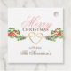 Modernes, elegantes, luxuriöses, grün-rot-weiß personalisiertes Weihnachtsgeschenk-Tag, mit moderner Kalligraphie-Schrift, goldenem Seilherz und heiligen Beeren.