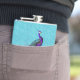 Der elegante Damenkolben aus türkisfarbenem, Wirblem Muster, mit einer farbigen lila und aquamarinen Pfaue, die auf einem Lavendel geblüht ist. Personalisieren Sie den lila Skripttext, um Ihre Bedürfnisse zu Anzug. Macht eine schöne Geschenkidee.