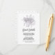 Eleganter Pflaume und Grau mit Blumenkarten und Punkten für Hochzeitsgäste. Die Karte enthält schwarzen Text.