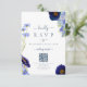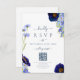 Eleganter Frühling und Sommer blauen Blumen Hochzeit rsvp Antwort Karte mit QR Code für Hochzeit Website. Einzigartig handgemalte Aquarellflorale inklusive Wildblumen mit einem romantischen Typografie-Skript inklusive der Braut- und Ziermonogramm-Initialen, um das Antwortdatum und die Website-Details zu personalisieren, inklusive QR Code für Online-uAwg mit den einfach zu bedienenden Vorlagen. Blume auf der Wiese, wie Maisblumen, Mohn, Kosmos und vergessen Sie mich nicht mit delikaten Kunstwerken der Künstlerin Catherine Sweetman. Die Farbpalette umfasst Maisblumenblau, staubige Blau, Blau, Blau, Marineblau, lila und grüne Farbtöne. Ideal für einen botanischen Garten oder eine Sommerhochzeit im Freien. Finden Sie passende Produkte in der eleganten Hochzeitssuite im Blumensommer