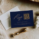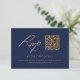 Diese QR-Code RSVP-Karten sind perfekt für eine moderne Hochzeit und zeichnen sich durch ein elegantes Skript und minimalistisch marineblau-blaues Design aus.
