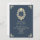 Feiern Sie Ihren großen Tag in zeitlosem Stil mit dieser eleganten marineblauen Hochzeitsveranstaltung mit verzierten Goldakzenten und einem regulären Monogramm-Wappen. Der tiefe Marinehintergrund sorgt für Raffinesse, während der QR-Code auf der Rückseite den Zugang zu den UAWG- und Hochzeitswebseiten für die Gäste einfach macht. Eine perfekte Mischung aus traditioneller Eleganz und modernem Komfort, ideal für eine klassische Herbst- oder Winterhochzeit.