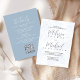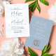 Dieses Design verfügt über einen QR-Code, eine elegante dustig blaue Blumenzetteleinladung mit einer uAwg-Online-Website, einem stilvollen, trendigen Kalligraphieskripttext, Details zur Antwort auf die Antworten der Gäste, einem klassischen, modernen Minimal, mit einem Scan-Scannable QR-Codegenerator, einem stilvollen Blätter für Grünpflanzen, einer Website-URL, einer weichen romantischen Garten Rose-Blume, einer traditionellen formalen Schreibwaren.
