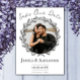 Mit diesem eleganten Wreath Foto Frame kündigen Sie Ihr Hochzeitstag Save the Date an Freunde und Familie. Das Design der Ankündigung zeichnet sich durch eine Foto-Platzierung des glücklichen Ehepaares, ein gepflegtes Textdesign und ein elegantes Kranmuster auf der Rückseite aus.