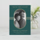 Diese eleganten Speicherkarten verfügen über einen gerundeten goldenen Rahmen aus Imitaten, der Ihr persönliches Foto umgibt, mit geometrischen Linien und modernen Texten auf einem grünen, smaragdgrünen Hintergrund.
