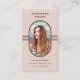 Diese eleganten Visitenkarten verfügen über einen abgerundeten schwarzen Rahmen, der Ihre Wahl auf Ihr eigenes Foto umgibt, mit passenden geometrischen Linien und modernem Text auf einem weichen, rosa Hintergrund. Dieses stilvolle und dennoch berufliche Design ist ideal für Fotografen, Models, Agent oder alle, die ein Foto auf ihren Visitenkarten bevorzugen. Sie können Ihre Social Media-Informationen auf der Rückseite hinzufügen.