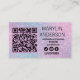 Machen Sie mit diesen eleganten und trendigen Visitenkarten eine Aussage, perfekt für lasche Künstler und Techniker. Mit einem atemberaubenden Farbverlauf in sanften Pastelltönen verbindet dieses Design moderne Ästhetik nahtlos mit beruflicher Funktionalität. Das fett gedruckte "LASHES"-Textwerk und das auffällige Kunstwerk zeichnete Aufmerksamkeit, während der scannable QR-Code eine innovative Touch für den sofortigen Zugriff auf Ihre Dienstleistungen oder Ihr Portfolio bietet. Ideal für Laser-Verlängerungsspezialisten oder Schönheitsprofis, die einen bleibenden Eindruck verlassen suchen. Diese Karten sind sowohl praktisch als auch optisch auffällig und zeigen Ihre Marke mit einem modernen, eleganten und stilvollen Ambiente.