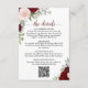 Diese wunderschöne Hochzeitszimmerkarte soll Ihnen zusätzlichen Platz für alle Informationen geben, die Ihre Gäste benötigen, wie z.B. Registrierung, Empfang, Reise, Unterkunft, etc., sowie einen individuellen QR-Code, der Ihre Gäste zu Ihrer Website führt, um weitere Informationen zu erhalten. Die Karte zeichnet sich durch ein rustikales bohisches Design aus. Handgemalte Aquarelltöne in Rot-, Bordeaux- und Rosa-Rose. Der Titel ist in elegantem Schriftzeichen geschrieben und steht für "die Details". Die Rückseite ist in einem roten, dunkelroten Marmorton gehalten, mit einer Reihe von Blume, Eukalyptus-Blätter und Gartengrün.