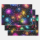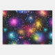 Eleganter Regenbogenfeuerwerk auf schwarzem Hinter Geschenkpapier Set