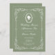 Für die Braut. Grün, inspirierte Hochzeitsdusche/Brautnachmittagstee. Der Designtext kann bearbeitet werden, um Ihren Anforderungen Anzug. So kann beispielsweise der Text "Polterabend Nachmittagstee" auf "Nachmittagstee Brautparty" umgestellt werden, um Ihre Vorliebe zu Anzug zu bringen. Ihr eigener Text kann zur Anzug Ihrer Veranstaltungsanforderungen hinzugefügt werden. Das Design ist elegant und altmodisch. Für die Braut, deren Vorliebe für eine intime und elegante Braut/Polterabend ist. Geeignet für jede Zeit des Jahres. Für individuelle Wünsche kontaktieren Sie bitte die Paper Desk Designs via Zazzle.