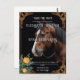 Dieses einladende Hochzeitsdesign besticht durch ein eindrucksvolles Pferd, das auf einem warmen beigen Hintergrund elegant verteilt ist. Verzierte Blumen- und Scrollwork-Muster bilden den Rahmen für das Bild und fügen eine Touch von Eleganz und Charme hinzu. Die aufwändigen Grenzdetails in Schwarz- und Goldtönen erinnern an zeitlose Eleganz und machen sie zu einer perfekten Repräsentation von Liebe, Kraft und Schönheit für eine unvergessliche Hochzeitsfeier. Anpassungsoptionen: Personalisieren Sie Ihre Namen, Ihren Hochzeitstag und Ihre Veranstaltungsdetails, um einen einzigartigen Sake für Ihren besonderen Tag zu erstellen.