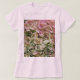 Stellen Sie sich vor, Sie sind in einen klassischen alten romantischen Garten getreten, um von diesen rosa und grünen Hydrangea-Blume begrüßt zu werden. Schließen der Blütenblätter in natürlichem Sonnenlicht. Schöne Aussicht auf botanische Details. Set auf rosa v-Nacken-Shirt.