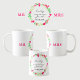 Tasse mit rosafarbenen Blume mit grünen Zweigen und Blätter Kranzdesign. Name und Datum des Ehepaares. MR auf der einen Seite und MRS auf der anderen Seite. Personalisieren Sie diese Vorlage, um Ihre Informationen hinzuzufügen. Klicken Sie, um weitere Änderungen vorzunehmen. Alles ist anpassbar.