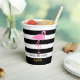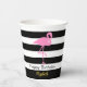 Eleganter rosa Flamingo Schwarz-Weiß Streifen Name Pappbecher