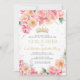 Eleganter rosa Floral Gold QR Code Quinceañera Einladung