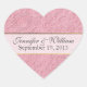Fügen Sie mit diesem hübschen Aufkleber eine schöne Touch zu Ihren Hochzeitseinladungen hinzu. Ein Siegel mit einem Sticker in Form eines Herzumschlags, mit rosa, blumengeprägtem Hintergrund. Ein goldfarbener, weißer, halbdurchsichtiger Band, über das Herz hat dunkelgrauer, benutzerdefinierter Text bereit, um zu personalisieren. Ideal für viele Hochzeitszwecke.