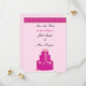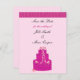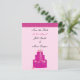 Ein elegantes Design mit einem rosa Hochzeitskuchen mit Blume und Bändern. Ein weicher rosa Hintergrund mit hübsch rosa Akzent an der Oberseite. Passen Sie Ihre Wünsche mit Namen und Hochzeitstermin an.