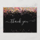 Eleganter rosa holografischer Glitzer Black Danke Postkarte