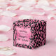 Rosa und schwarz leopardenfarbene Muster 2" quadratische Greifkästen mit der Danksagung auf der Vorderseite auf rosa Imitat-Folie in schicker Schrift. Schöne zum Geburtstag Party Gefälligkeitsboxen und mehr. PASSENDE Artikel in unserem Geschäft.
