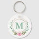 Eleganter rosafarbener Blumenkranz mit Ihrem persönlichen Monogramm auf Weiß mit Silberkette und Ring. Ein großartiges Gesprächsthema beim Behalt Ihrer wichtigen Auto- und Zuhause-Tasten, sicher und leicht zu finden. Dieser prachtvolle Schlüsselring ist elegant und stilvoll, aber einfach und modern und ein schönes Accessoire für jedes Outfit.