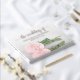 Dieses wunderschöne Gästebuch wird ein schönes Erinnerungsstück für Ihren besonderen Tag schaffen, das Sie für die kommenden Jahre schätzen können. Das Design ist romantisch, elegant und stilvoll. Das Foto eines Single mit einer hellrosa Rose, die in einem Wasserbecken mit eleganter Kalligraphie-Schrift "Die Hochzeit von" mit Ihren Namen und dem Hochzeitstag abgebildet ist. Auf diese Weise können Sie Ihre Gäste willkommen heißen und eine bleibende Erinnerung an Ihre Hochzeitsfeier schaffen.