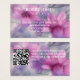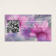 Eine elegante Visitenkarte mit Aquarellfarben, Rosa und violetten Blumen. Diese Version hat einen QR-Code des Backens, mit dem Sie Ihre Website oder eine bestimmte Seite auf Ihrer Website bewerben können.