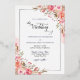 Diese elegante Hochzeitseinladung mit Blumensträußen in den Farben Pfirsich und Rosa. Silber-Folientext für Ihre Details ist von einem silbernen Rahmen umgeben. Einfach anpassen, indem Sie auf "Personalisieren" klicken.