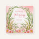 Schöne rosa Blumen, Aquarell mit grünem Kreis und Ihr Name mit dem Datum der Hochzeit. So hübsch. Dies ist für den Frühling, Sommer oder Winter geeignet.