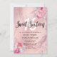 Schöne Sweet 16 Geburtstagsfeier Einladung mit Imitate Rose Gold Marmor Glitzer Textur, Rosa & Silber Rose und elegante Kalligraphie Schriftart.