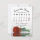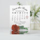 Diese wunderschönen "Save the Date"-Karten verfügen über ein prächtiges Foto einer langgesteppten Rostorange aus Single oder eine bunte, farbige Rose, die in Wasser mit Wellen und Wellen reflektiert. Die Karte enthält einen Kalender mit Ihrem Hochzeitstermin in einem Herzen eingekreist. Schönes romantisches Design.